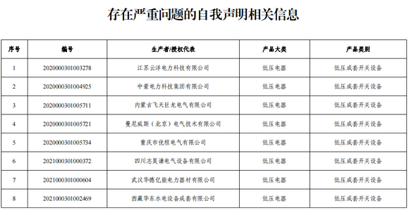 (一)撤銷此次抽查中發(fā)現(xiàn)存在嚴重問題的14份自我聲明,以及近期地方市場監(jiān)管部門監(jiān)督檢查中發(fā)現(xiàn)存在嚴重問題的5份自我聲明,有關(guān)信息歸集至全國企業(yè)信用信息公示系統(tǒng)所涉及產(chǎn)品應(yīng)當停止出廠、進口或銷售,生產(chǎn)者在6個月內(nèi)不能再次申報自我聲明。