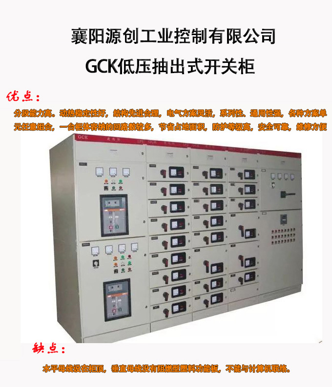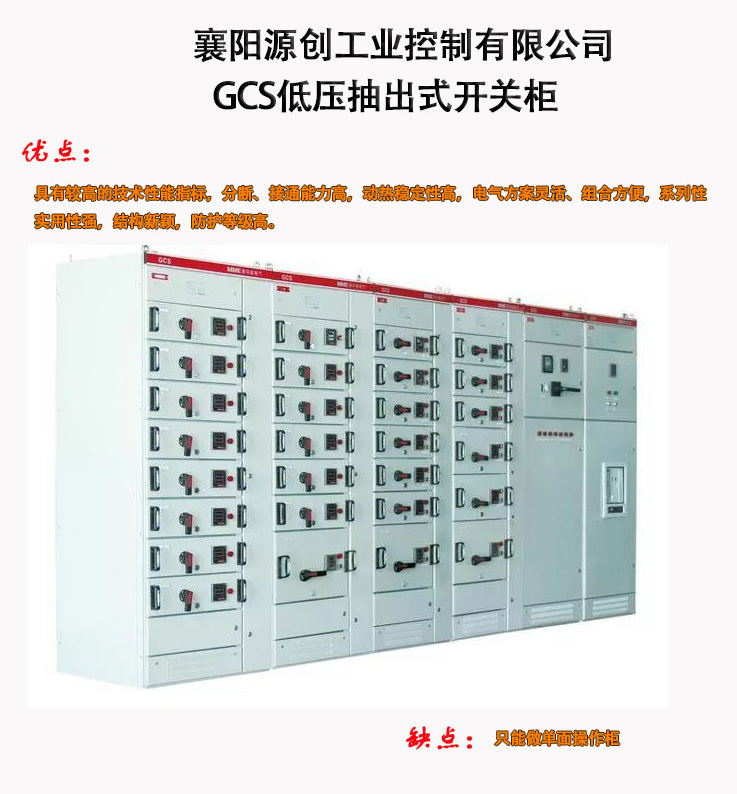 GGD是固定柜、GCK、GCS、MNS是抽屜柜,GCK和GCS、MNS柜抽屜推進機構(gòu)不同,GCS柜只能做單面操作柜,深800mm,MNS柜可以做雙面操作柜,深1000mm,總的來說抽出式柜較省地方,維護方便,出線回路多,造價貴;固定式相對出線回路少,占地較多,如果客戶提供地點太少,做不了固定式的要改為抽屜式。