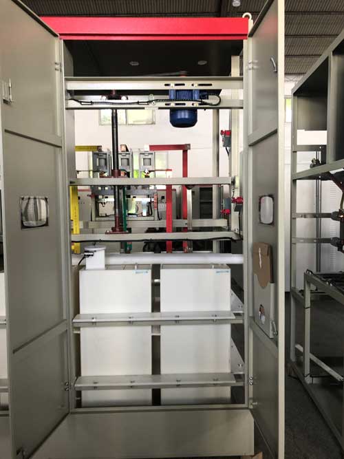 水電阻啟動柜又稱為水阻柜,液阻柜,液體電阻啟動柜,液態(tài)軟啟動柜,水電阻啟動柜的基本原理是通過機械傳動裝置使導(dǎo)電液體中兩平行極板的距離逐漸減小直至為零,使串入電機轉(zhuǎn)子回路中的電阻值平滑減小,從而實現(xiàn)繞線式大中型電動機的重載平滑起動。它克服了頻敏電阻起動器沖擊電流大、難起動和操作不便等問題。適用于大型設(shè)備的電動機重載起動,是頻敏電阻起動器和金屬電阻起動器的替代產(chǎn)品。采用水電阻取代頻敏電阻起動器和金屬電阻起動器,近些年來的技改項目中也普遍使。
