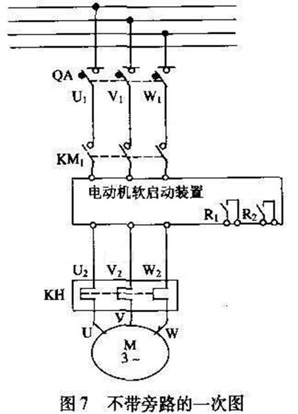 當(dāng)電動(dòng)機(jī)全速運(yùn)行后,用旁路接觸器來(lái)取代已完成任務(wù)的軟起動(dòng)器,以降低晶閘管的熱耗,提高系統(tǒng)效率。在這種模式下用一臺(tái)軟起動(dòng)器可以起動(dòng)多臺(tái)電動(dòng)機(jī)。