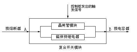 控制器發(fā)出觸發(fā)信號(hào)給復(fù)合開(kāi)關(guān),復(fù)合開(kāi)關(guān)控制板接到信號(hào)后,開(kāi)始檢測(cè)電壓過(guò)零點(diǎn),并在電壓過(guò)零時(shí)使晶閘管接通主回路,磁保持繼電器經(jīng)一定延時(shí)后,在等電勢(shì)情況下吸合。由于晶閘管是無(wú)觸點(diǎn)開(kāi)關(guān),且零電位投入,正常
