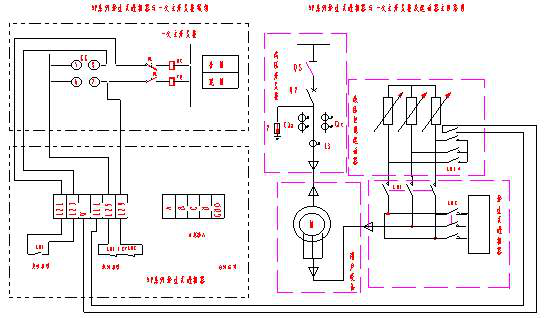 開關(guān)柜相互聯(lián)鎖,進(jìn)相器不合閘時(shí)KM1不吸合,主機(jī)不能起動(dòng);如果進(jìn)相器出了故障,則CPU能自動(dòng)發(fā)出退相指令使進(jìn)相器退相,當(dāng)轉(zhuǎn)換機(jī)構(gòu)出現(xiàn)故障,則進(jìn)相器內(nèi)的KM1、KM2就會(huì)出現(xiàn)吸合或同時(shí)斷開的現(xiàn)象,此時(shí)通過KM1、KM2常閉觸點(diǎn)串聯(lián)后并入電機(jī)一次開關(guān)柜的分閘回路中,通過聯(lián)鎖使一次柜分閘。