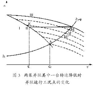 在多臺(tái)調(diào)速泵并列運(yùn)行時(shí),所有的調(diào)速泵應(yīng)在同一轉(zhuǎn)速下運(yùn)行;對(duì)于關(guān)死點(diǎn)揚(yáng)程不同的泵,則應(yīng)保證各泵的出口揚(yáng)程(壓力)基本一致,這時(shí)的轉(zhuǎn)速就不一樣了,要進(jìn)行折算,就不容易匹配了