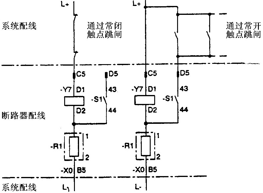 提供的電路圖通過專用的模塊和補(bǔ)充說明給出了斷路器的配線和連接。
