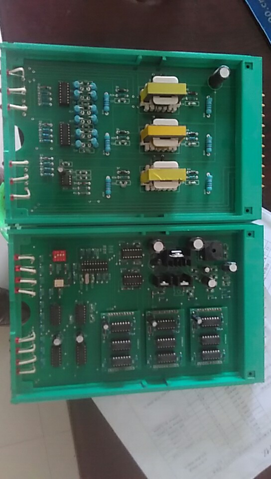 一、 開車 1.打開進相器前柜門,合上空氣開關 QF1),進相器電源接通,柜體面板上的紅色指示燈,等待主電動機直動,關閉柜門。 2.主電動機起動,一直到起動完畢,主電動機正常運轉為止。 二、 投入進相 1.打開柜門,觀察控制單元是否正常,控制單元正常時,各指示燈顯示如下: 主板(中間一塊)。除上面三個指示燈(L1、L2、L3)周期性循環(huán)顯示外(注意:此指電動機在運轉時的狀態(tài)。如電動機未轉,該三燈為隨機狀態(tài)), 其它五燈一直亮著。 驅動板(兩邊兩塊)。其上各指示燈(12個)均亮,并有微閃亮。 如有任一燈不符合上述狀態(tài),則表明控制單元有故障,應維修好后方可進相。 2.用力按一下“進相”按鈕(SB1,綠色按鈕),進相器面板的紅燈滅、綠燈亮(HL2),開始進相。進相器上的電流表指針快速下跌并穩(wěn)定,功率因數(shù)表指針快速上升并穩(wěn)定(指針位于“滯后”區(qū)域)。 三、退相 用力按下“退相”按鈕SB2,紅色按鈕),紅燈亮、綠燈滅,進相器即退出進相狀態(tài)。 四、停車 進相器退相后,按下主機停車按鈕,電機即停車。